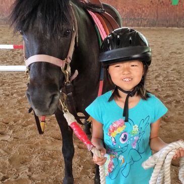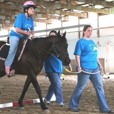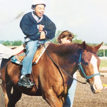 Liam began therapeutic riding lessons when he was just 4 years old. Although quite a bit taller now, he's still the same curly haired boy who walks into lessons with a giant smile, ready to ride. Liam has developed over the years from being merely a passenger to becoming an active rider. Lessons have helped him to follow directions (on an